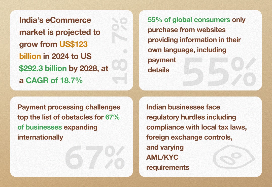 The global marketplace offers immense opportunities as India's online retail sector surges toward US$292.3 billion by 2028. Yet currency confusion remains a significant barrier, with 33% of shoppers abandoning carts when faced with foreign currencies.