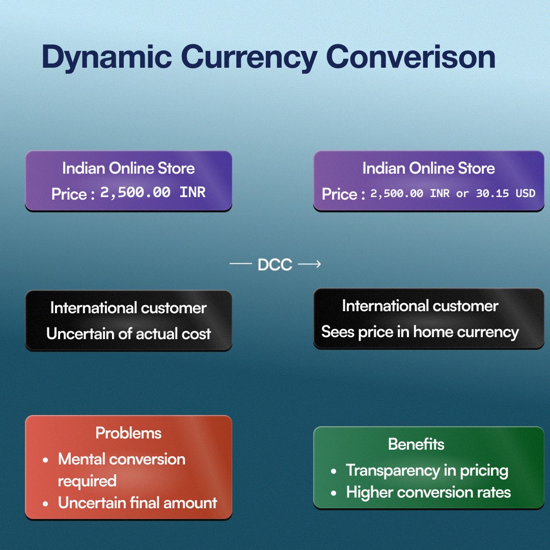 Dynamic Currency Conversion (DCC) solves this problem by displaying prices in customers' local currencies. For Indian businesses eyeing global expansion, DCC transforms the international shopping experience.