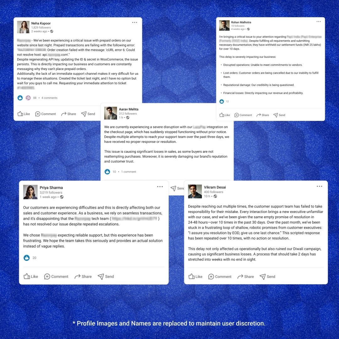 Business owners often turn to public platforms out of desperation when regular support channels fail. A quick scroll through LinkedIn reveals dozens of posts from frustrated merchants experiencing similar issues: