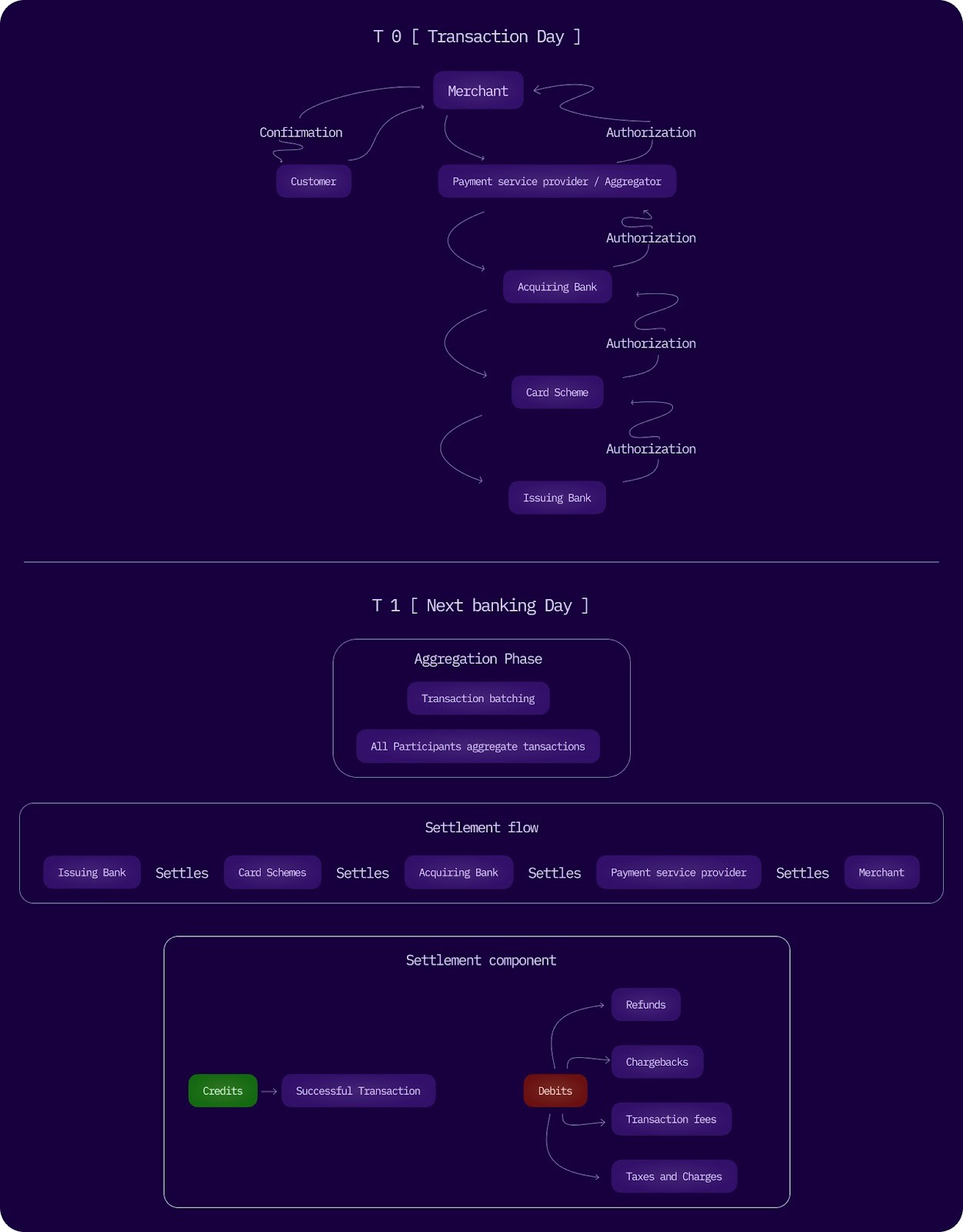 Think of payment settlement as a relay race, with each stage passing the baton to the next: