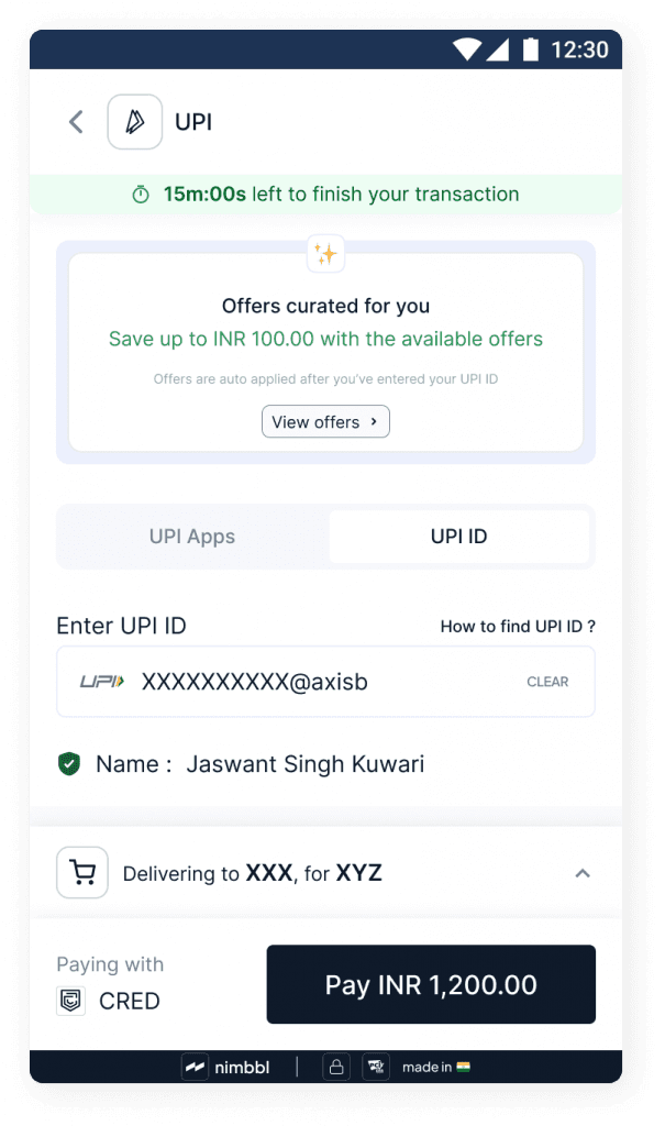 Customers land on the checkout page, they are presented with their UPI IDs.