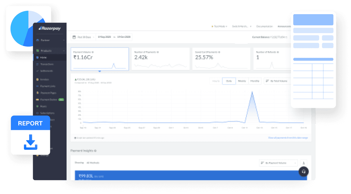 Detailed dashboard: Merchants get detailed statistics on payments, settlements, and refunds through Razorpay's dashboard, which helps in making informed business decisions