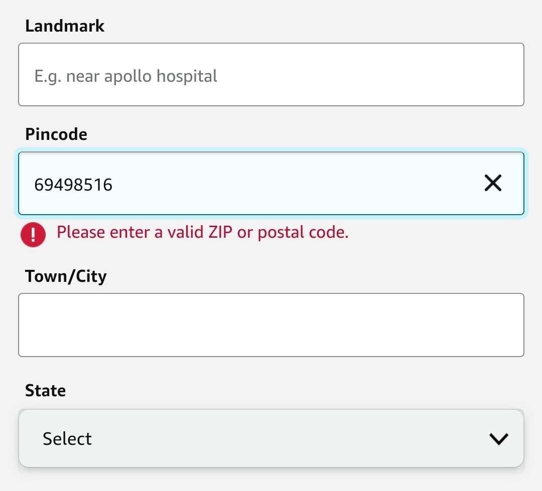 For example, if you enter your address on Amazon and the pin code format is wrong, a little message will immediately let you know. This helps users fix the issue on the spot.