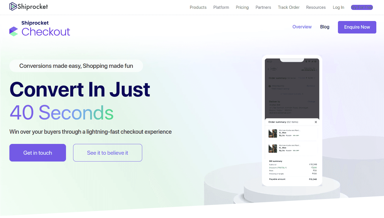 Shiprocket is among the most respected names in eCommerce shipping and logistics solutions. Guess what? They also have a checkout page solution. Shiprocket Checkout plugin brings many unique features designed to enhance the checkout and payment experience for WooCommerce stores.